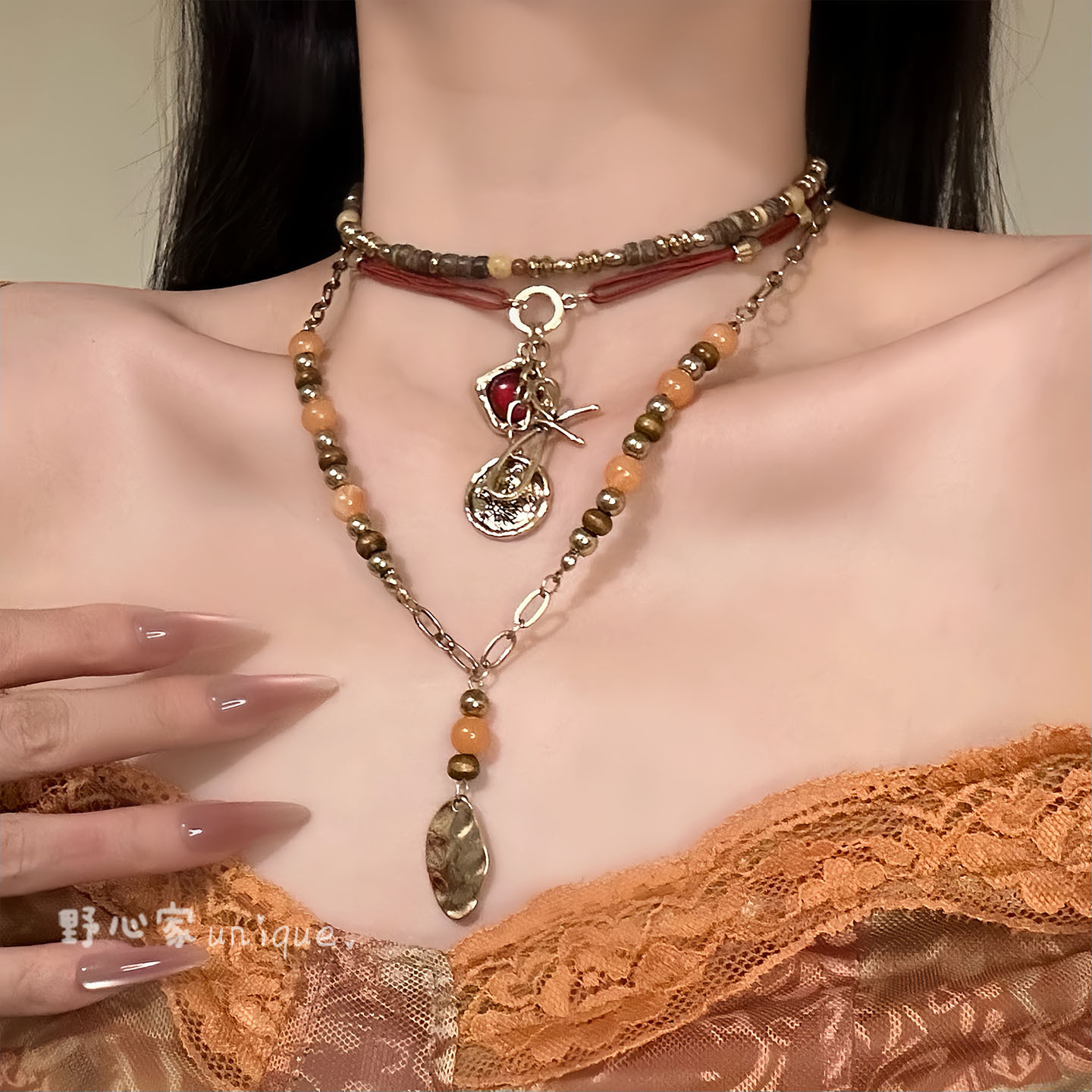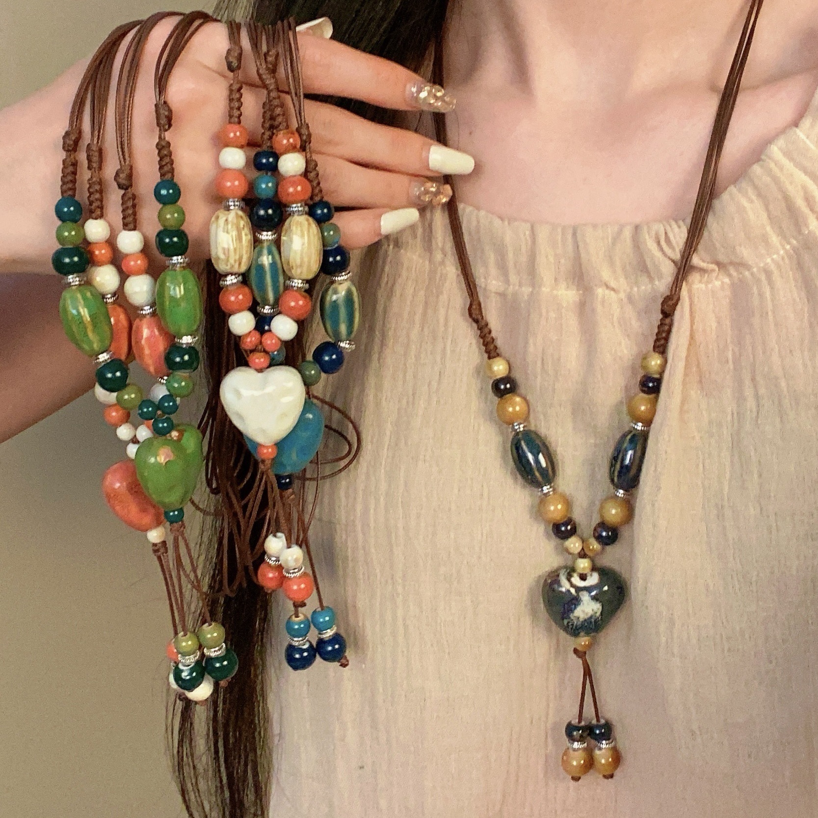 Tourist Attractions Hot Vintage Imitation Jade Pendant Woolen Chain Atmospheric All-match Accessories Necklace Ethnic Style Hanging Ornaments