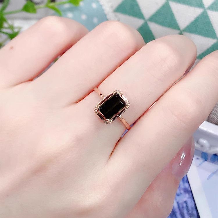 S925 Sterling Silver Elegant Square Emerald Ring Women's All-match Light Luxury High-end Color Treasure Ring Cross-border Hot Sale