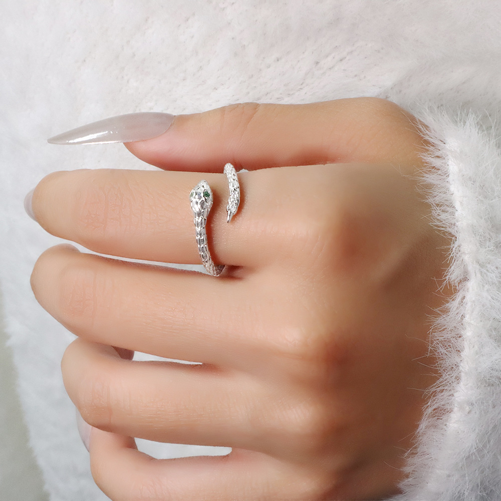 Winding Serpentine Green Zircon Open Ring European and American Style Finger Ring Light Luxury Benmingnian Small Snake Finger Ring for Gift