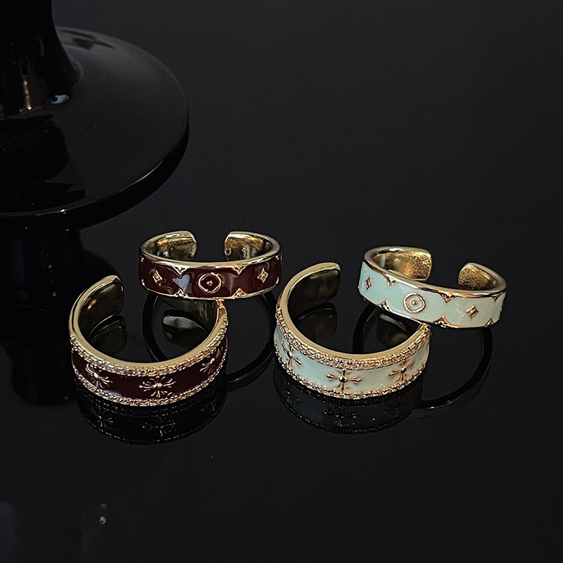 Enamel Oil-Dropped Zircon Bamboo Open Ring Women's Niche Design Light Luxury High-End Fashion Versatile Ring Bracelet