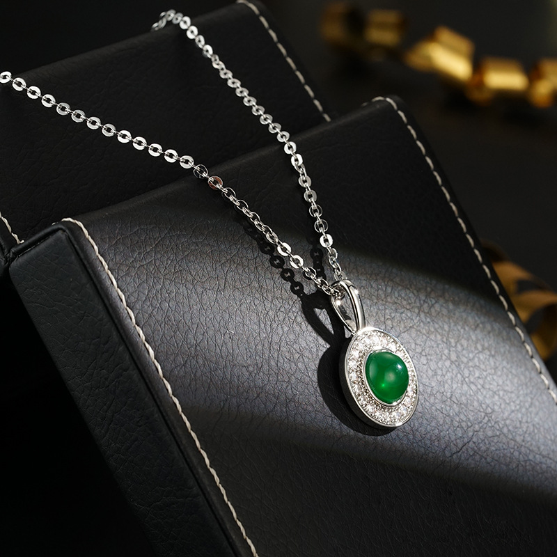 New Chinese Round Green Chalcedony Pendant Necklace Retro Temperament High-grade Light Luxury Fashion All-match Clavicle Chain Wholesale