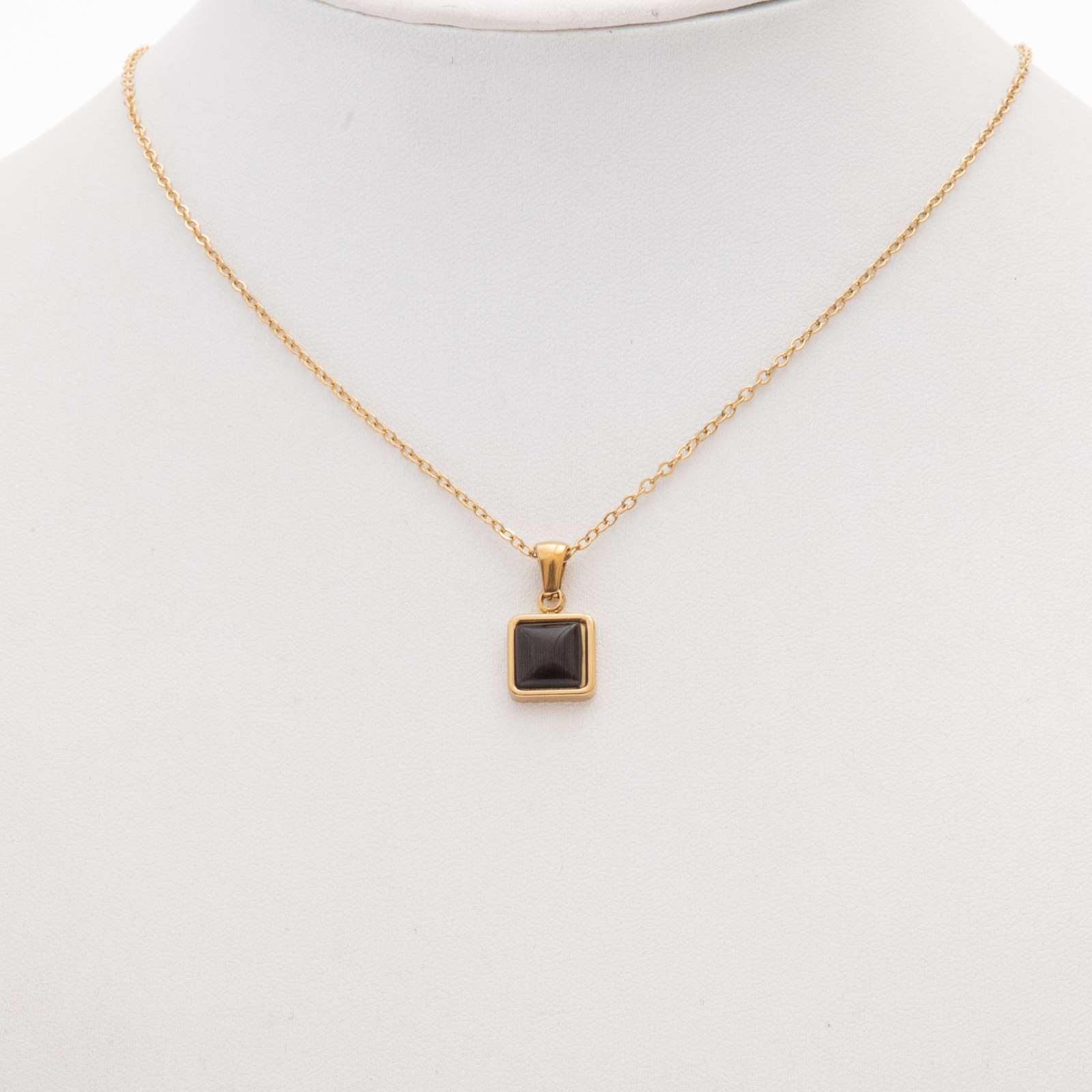 Cat's Eye Stone Titanium Steel Necklace European and American Simple 18K Gold-Plated Stainless Steel High-End Gemstone Pendant Necklace Jewelry