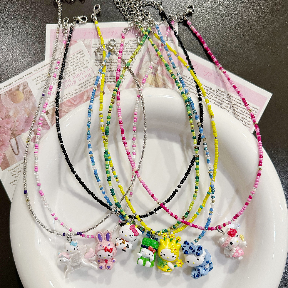 Cute Cartoon Kt Cat Necklace Women's Summer Collarbone Chain Niche Design Sweet Cool Spice Girl Style Necklace All-Match Accessories