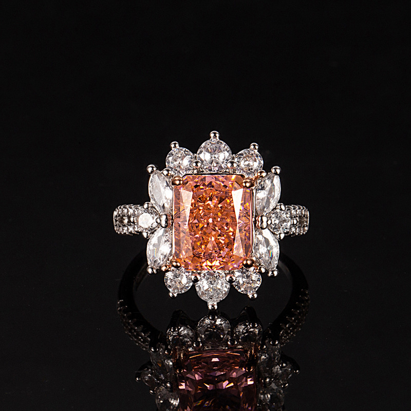 Tiktok Xiaohongshu New Ice Flower Cut Ring High Carbon Diamond Square Diamond Ring Electroplated Gold Jewelry Dropshipping