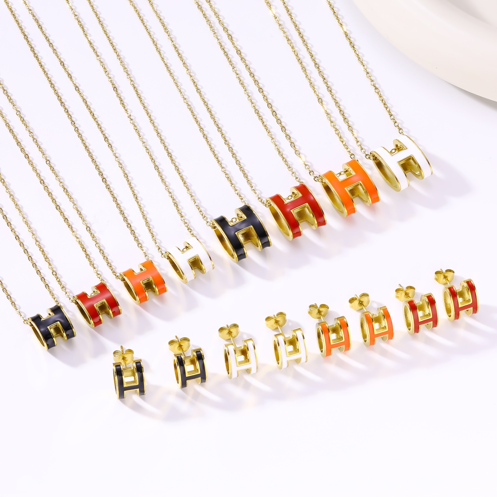 Ins Trendy Internet Celebrity Fashion Enamel Glaze Three-Dimensional White H Letter Pendant Necklace Simple All-Match Best Friend Clavicle Chain