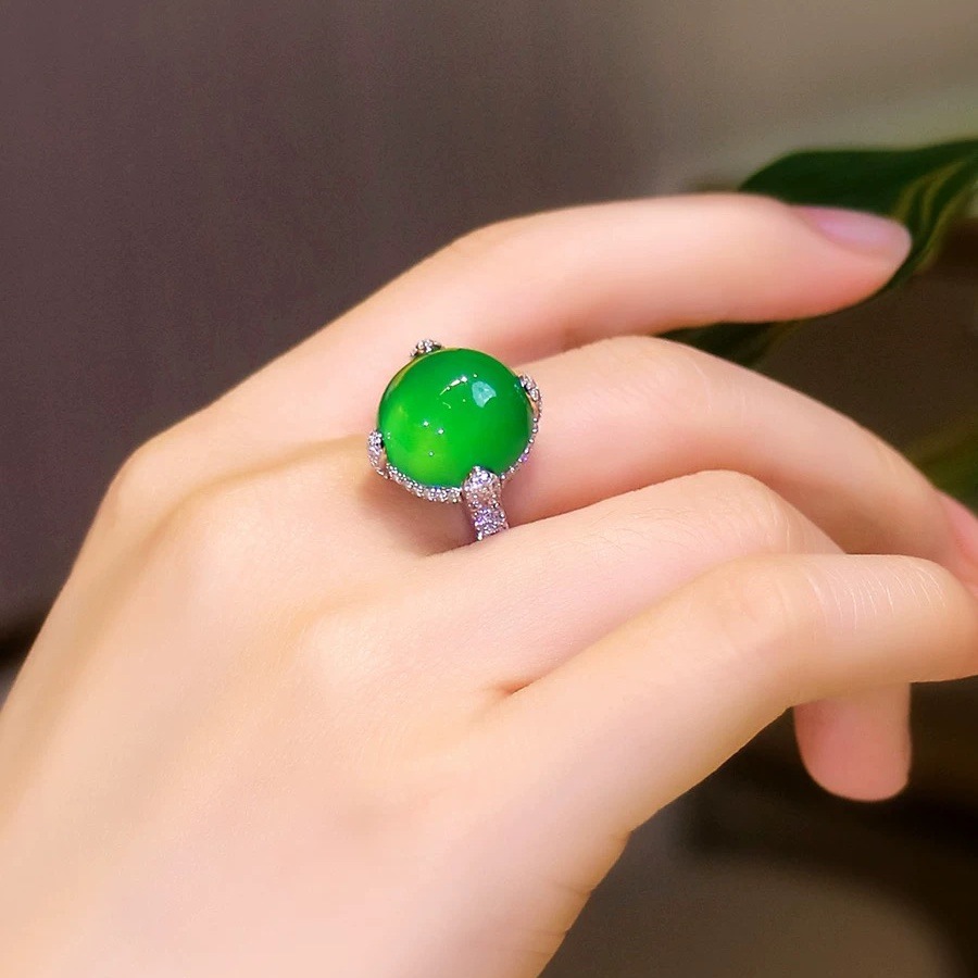 Natural Chalcedony Comparable to Jade Yang Green Agate Personalized Fashion Women's Jade Plated 925 Sterling Silver Inlaid Ring