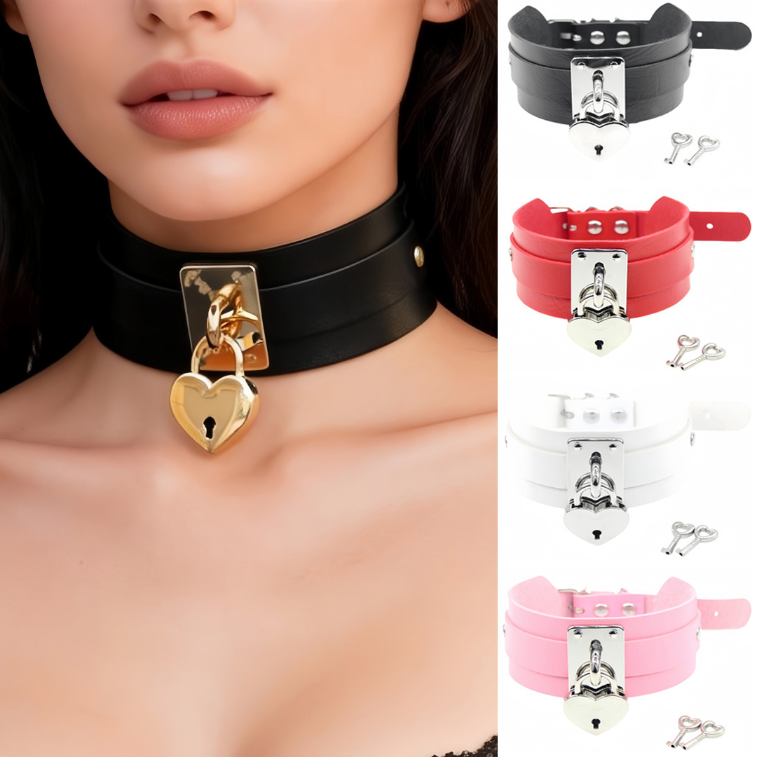 Eco-Friendly Pu Leather European and American Fashion Punk Double-Layer Choker Neck Collar Street Style Nightclub Heart Lock Necklace Choker