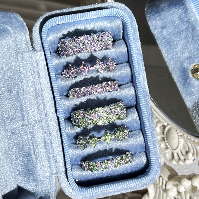A541 French Design Style Light Luxury Olive Green Zircon Fresh and Simple Women's Summer Open Ring Set Stackable Rings Finger Rings