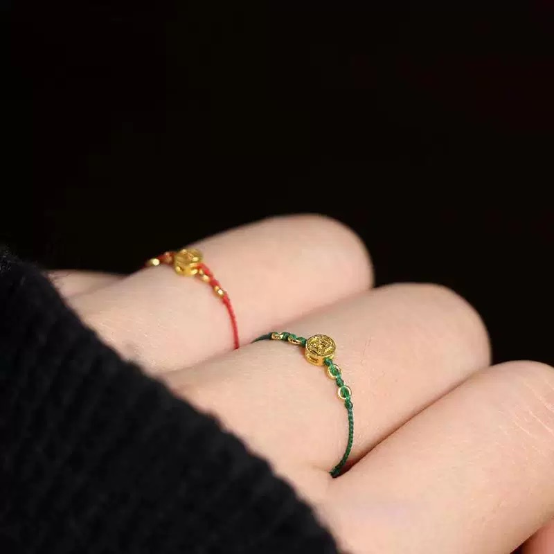 Benmingnian Small Coin Ring Female Niche Design Fine Knot Rope Food Finger Ring Male Lucid Wealth Bias Adjustable Retro Green