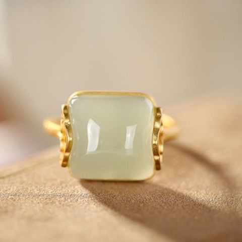 Ethnic style Xiangyun pattern imitation Hetian jade women's elegant simple retro elegant open imitation jade ring ring