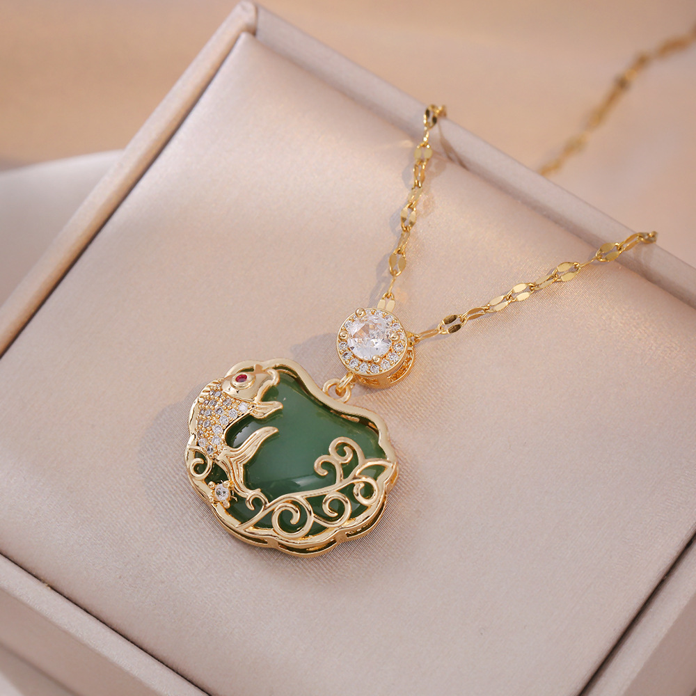 Necklace female Ji Lei Yue Longmen safety lock necklace anchor same style elegant green chalcedony long life lock clavicle chain