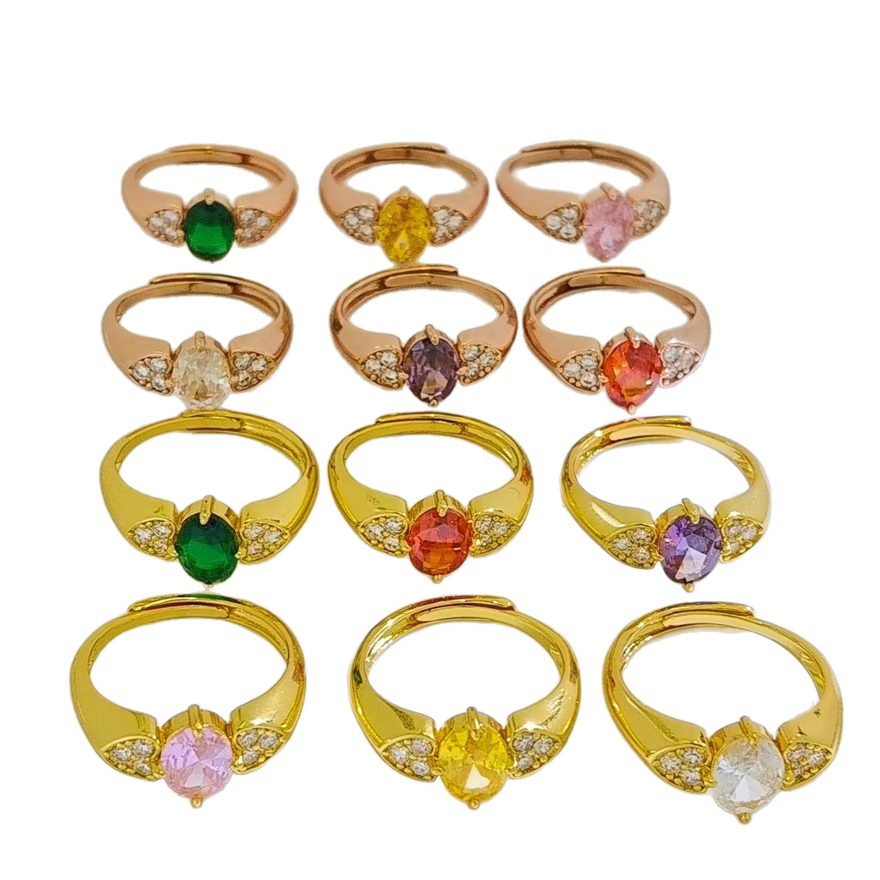 European and American Cross-Border Jewelry Pink Diamond Zircon Ring Women's 18K Gold-Plated Accessible Luxury Small Egg-Shaped Colored Gold Ring