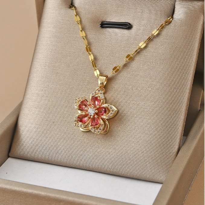 [Copper Micropaved Zirconia] Cross-Border European and American 360 ° Rotating Sunflower Pendant Necklace with Exquisite Niche Design