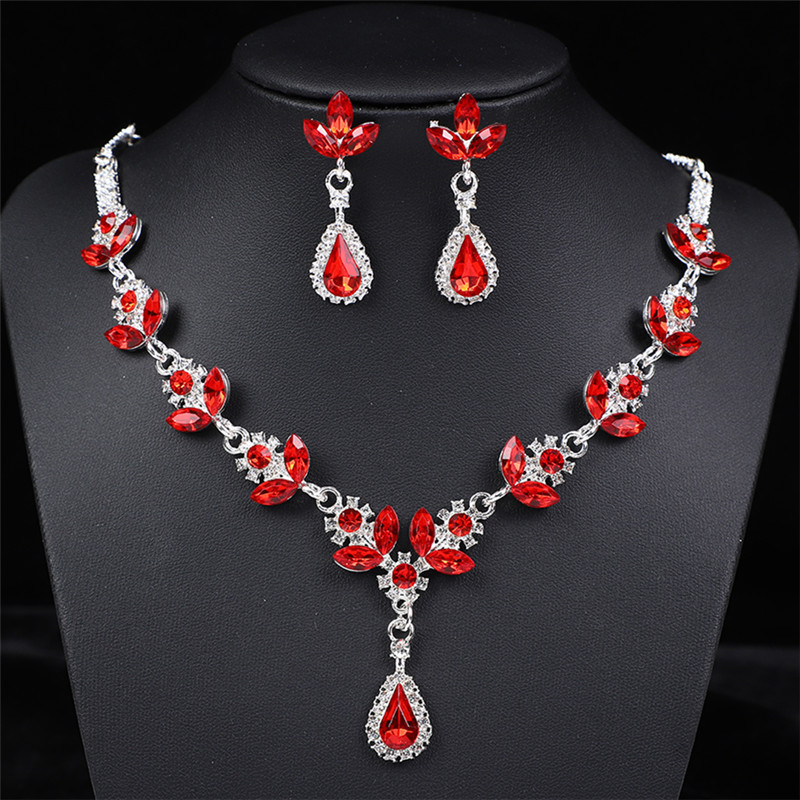 European and American Cross-Border Diamond Leaf Resin Marquise Jewelry Set Light Luxury High-End Clavicle Chain Fashion Necklace Jewelry