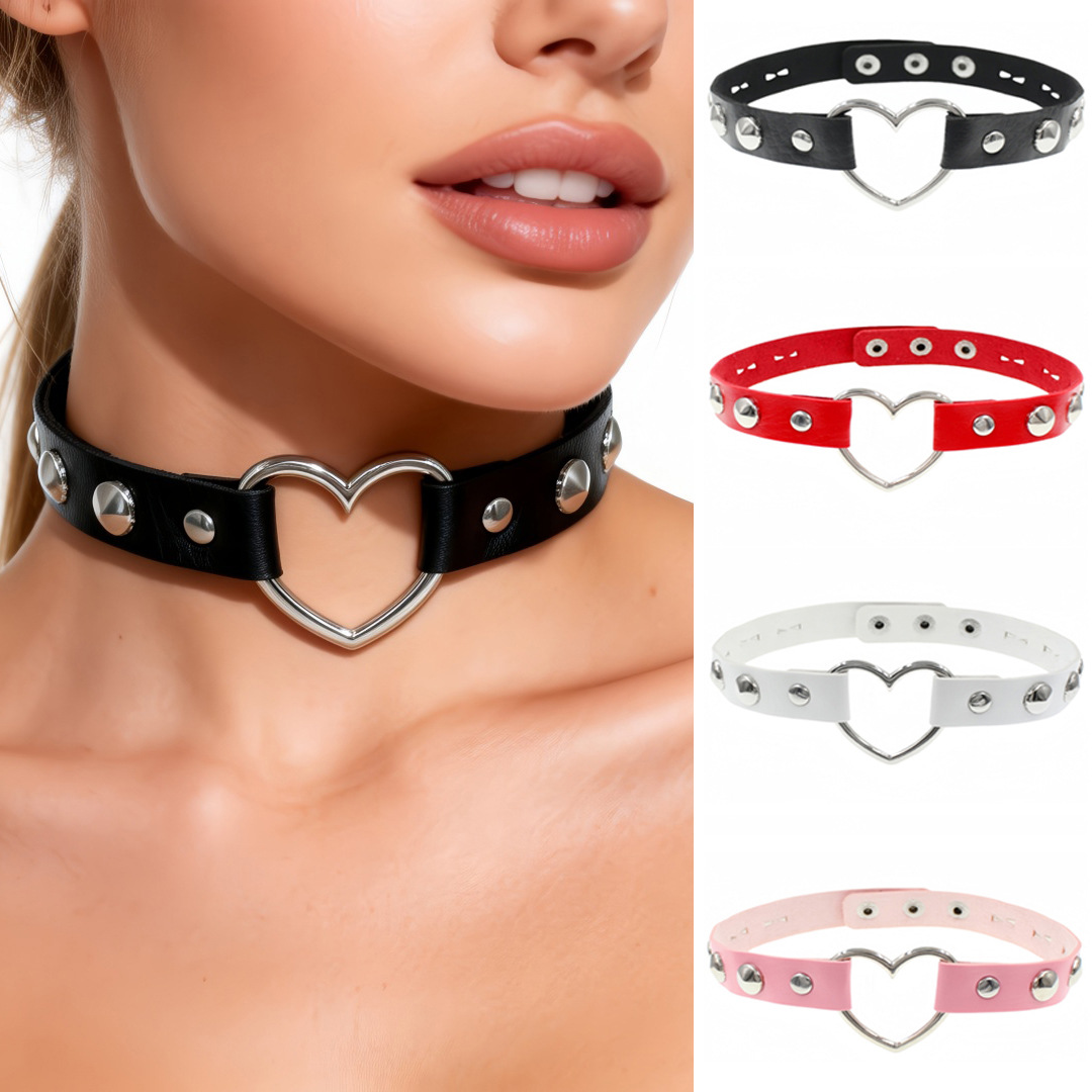 Eco-Friendly Pu Leather Harajuku Soft Girl Studded Heart Choker Punk Style Heart Choker Women's Collarbone Necklace Neck Chain