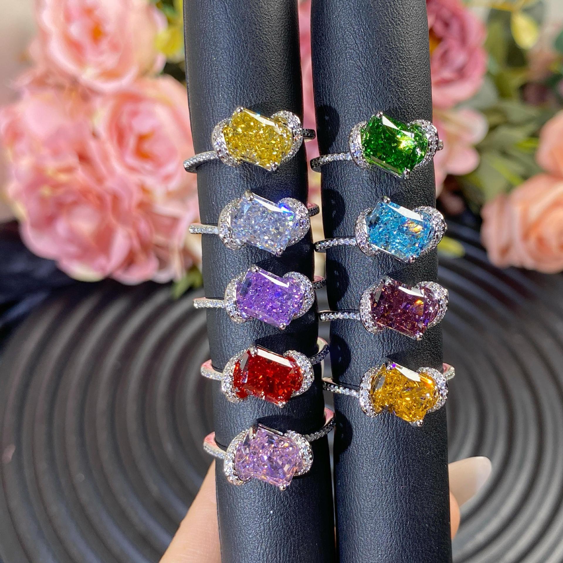 Cross-Border Live Broadcast Hot Sale New High-End Sparkling Ice Flower Cut High Carbon Diamond Imitation Colored Gemstone Padparadscha Women's Ring Adjustable