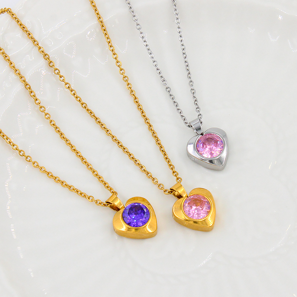 French Retro Love Inlaid Zircon Stainless Steel Pendant Necklace Female Niche Design Light Luxury Collar Chain YS235