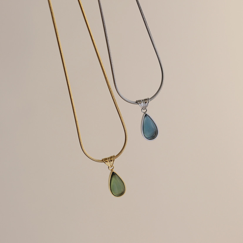 French Style Olive Green Blue Water Drop Pendant Necklace Women's Vintage Simple Niche Design High-grade Clavicle Chain Necklace