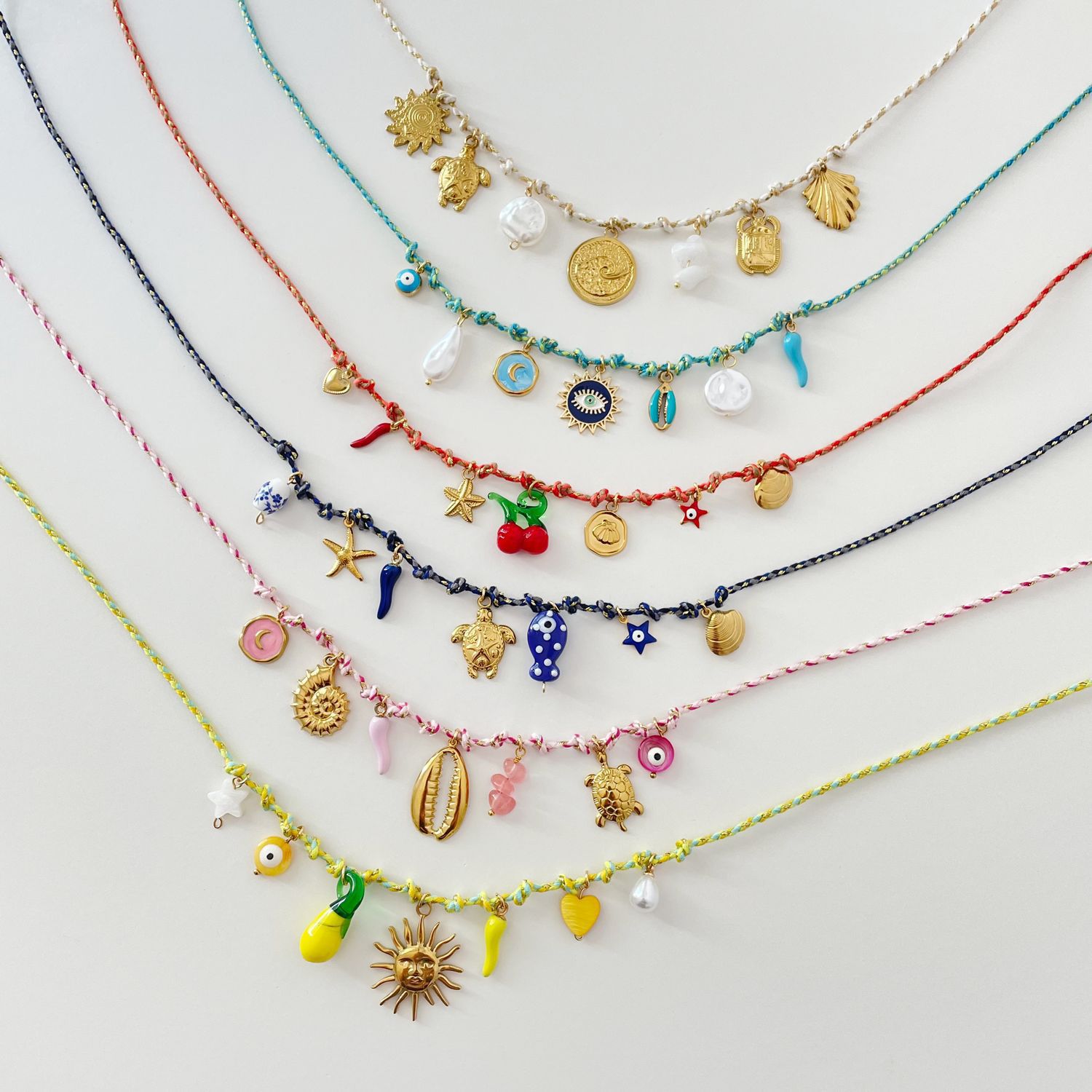 Independent Station Personalized DIY Knotted Rope Chain Lotus Feather Pendant Necklace Furnace Vacuum Plating Color Preservation