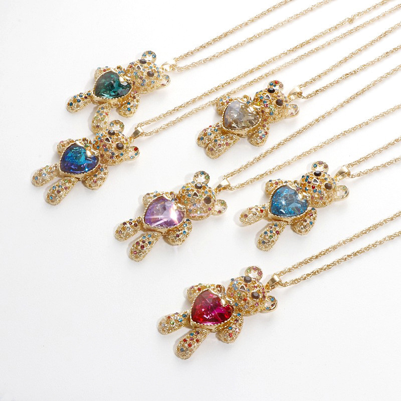 Cross-Border European and American Hot-Selling Movable Micro-Diamond Cute Winnie the Pooh Love Bear Pendant Gold Necklace for Women