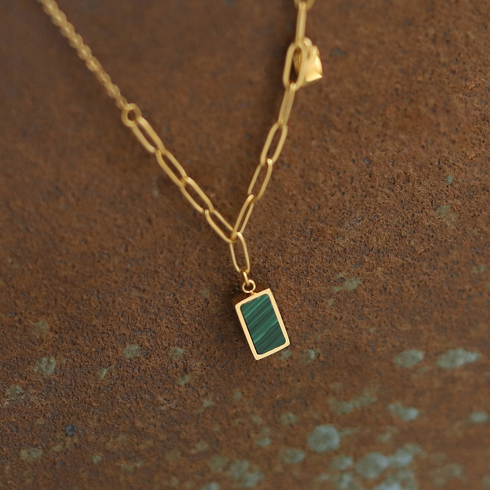 Xl406 Casual Ins Style Imitation Malachite Green Stripesd Necklace Small Square Clavicle Chain Titanium Steel Plated 18K