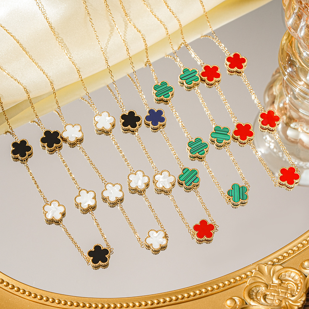 Five-leaf clover necklace women's high-class cross-border light luxury titanium steel non-fading high-class sweater chain lucky grass jewelry