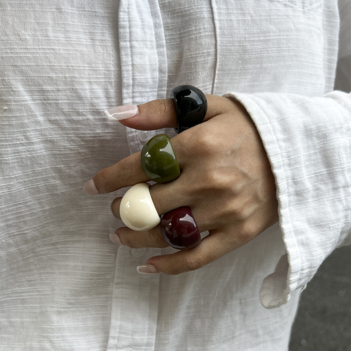 European and American Cross-Border Jewelry Niche Design High-End Closed Ring Fashion Simple Personalized Color Resin Ring