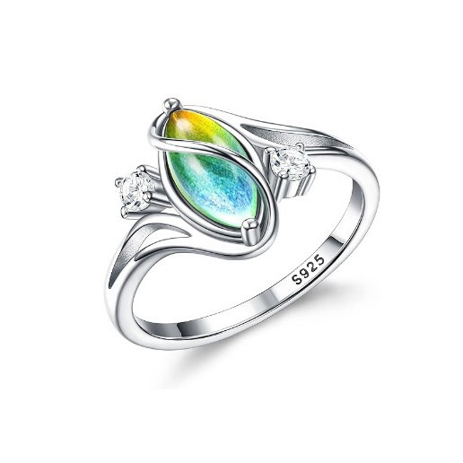 Amazon's New Jewelry European and American Fashion Personality Oval Green Moonstone Inlaid with Zircon Women's Geometric Ring