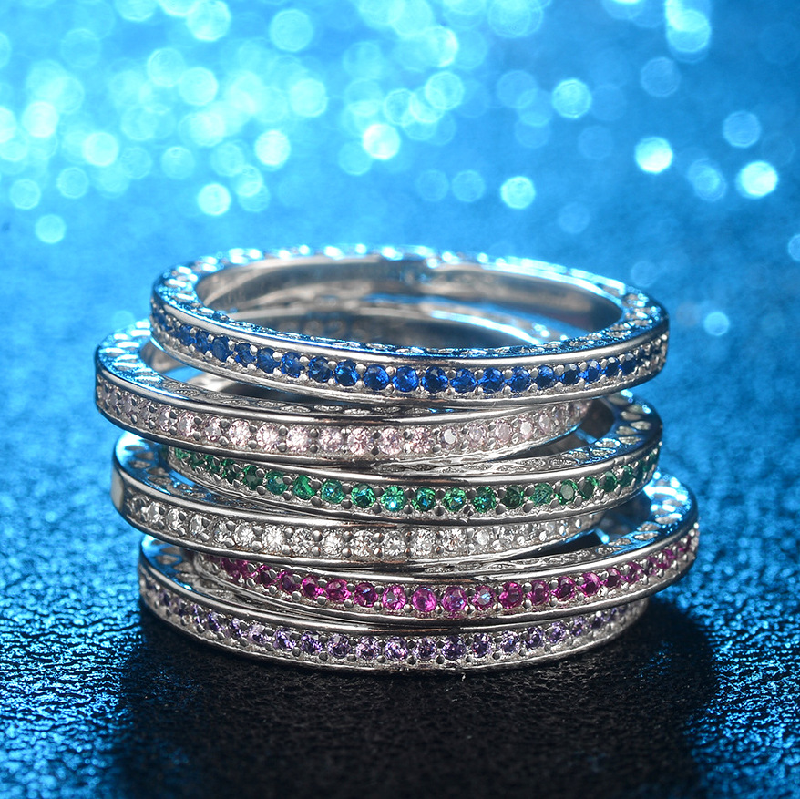 Europe and the United States cross-border popular hot silver ring shiny heart diamond ring enamel all-match wedding diamond ring