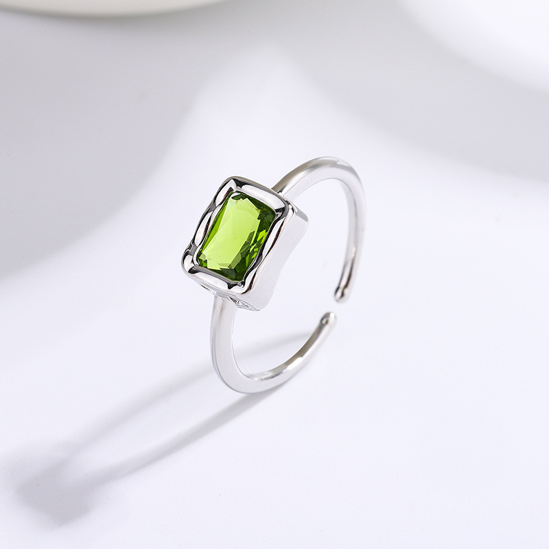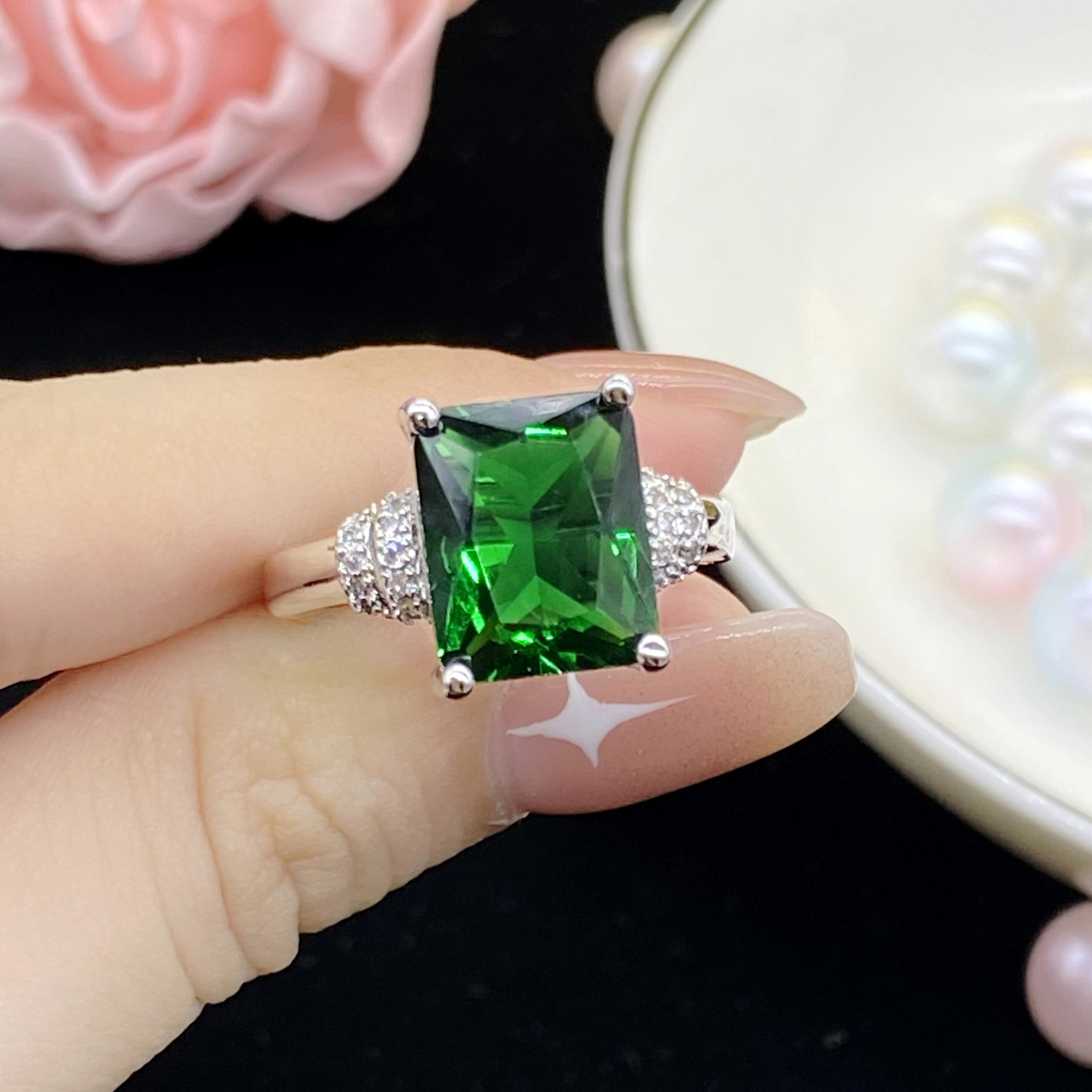 New High-end Group Zircon Elegant Emerald Simulation Green Tourmaline Color Treasure Opening Ring for Women