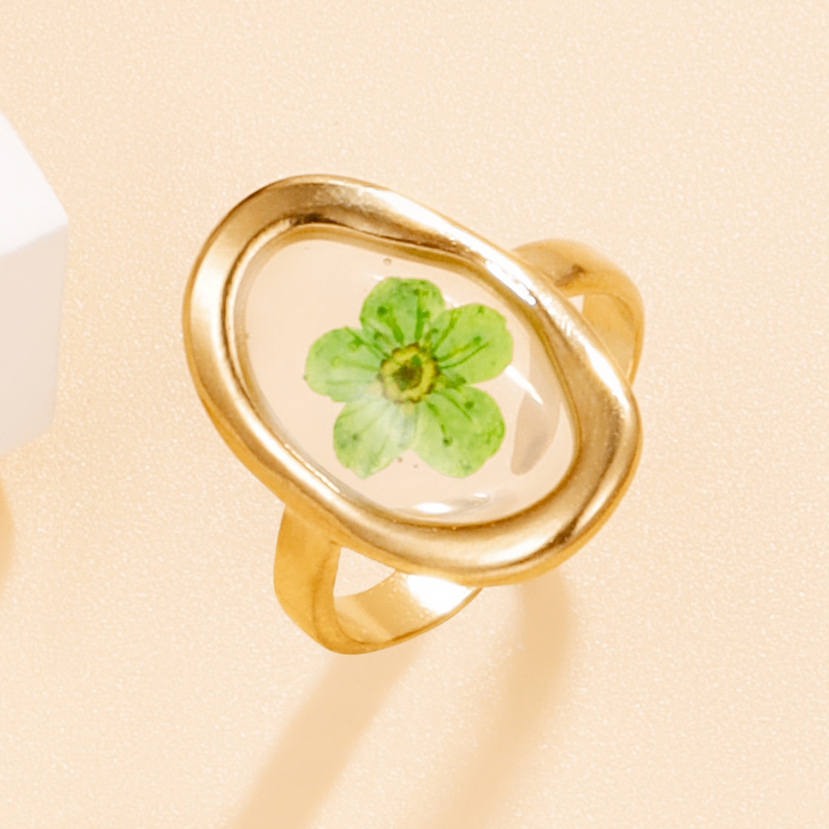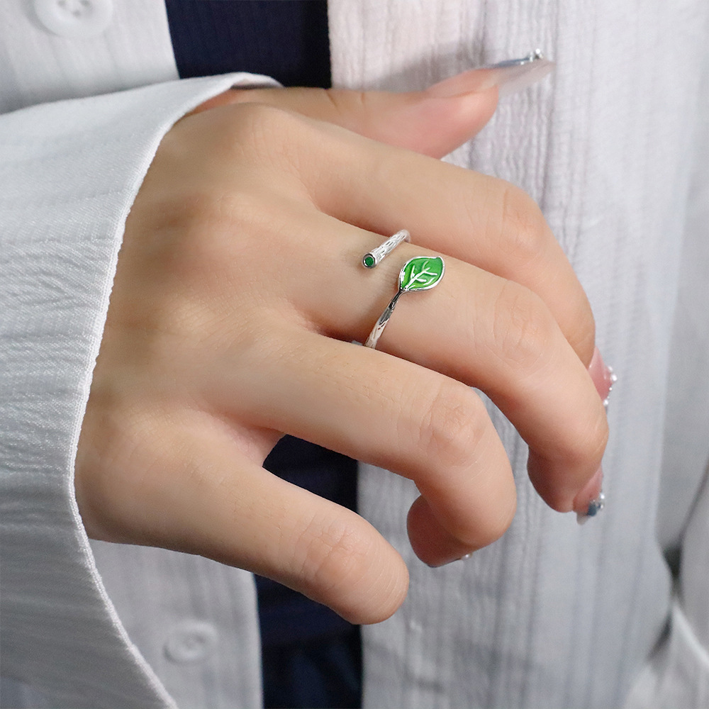 0920 Simple Stylish Small Fresh Green Leaf Ring Cat's Eye Stone Leaf Versatile Fashion Open Ring