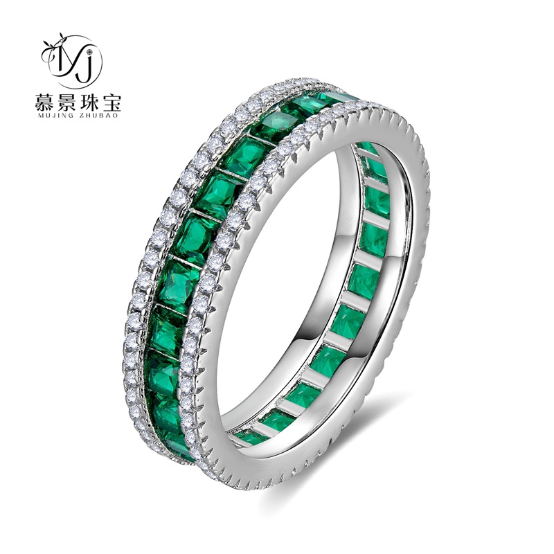Mu Jing's New 2023 New S925 Silver Edgeless Set with Princess Precision Full Diamond Micro-Set Ring European and American Cross-Border