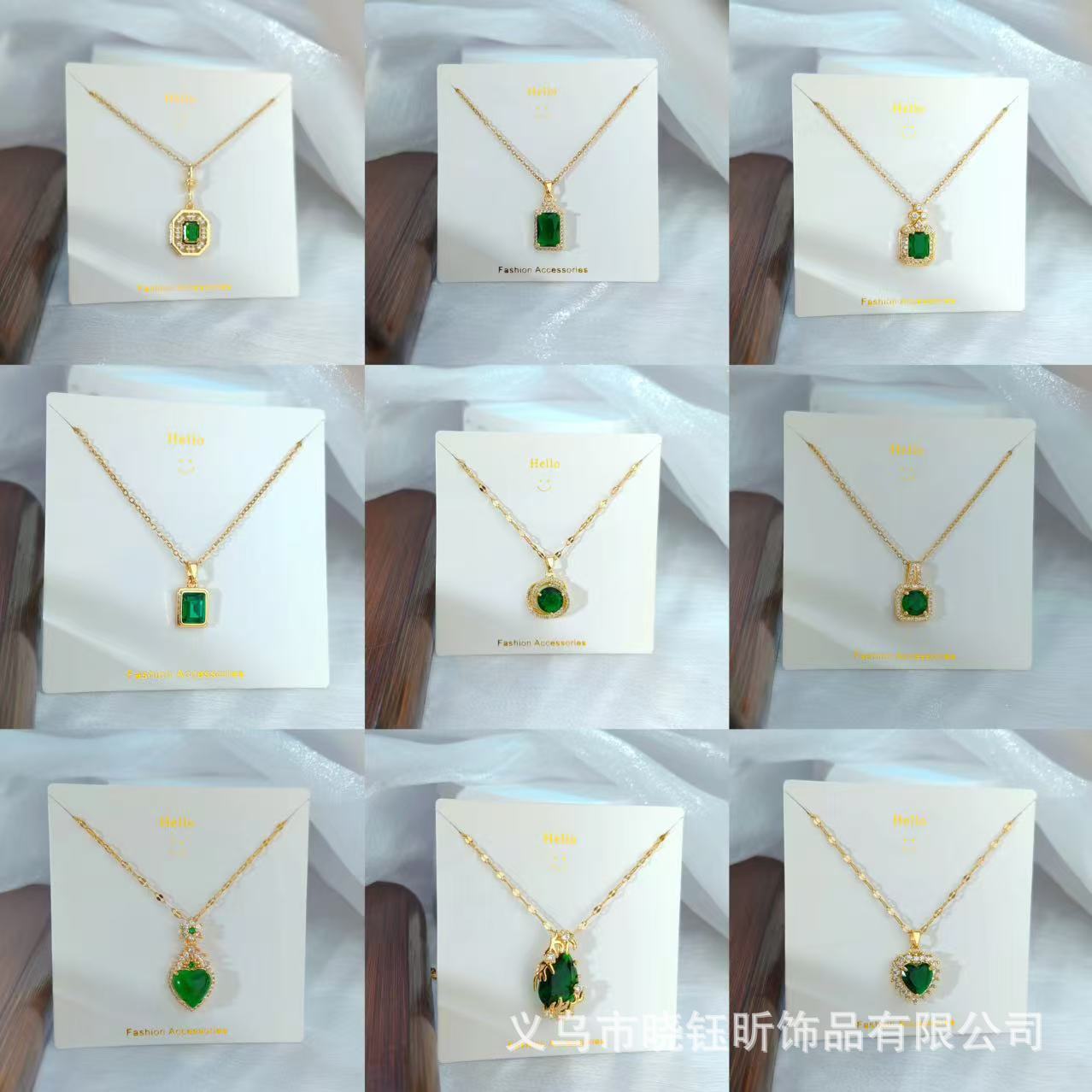 European and American Cross-Border Emerald Square Necklace for Women, High-End, Versatile, Fashionable and Atmospheric, Zircon Pendant, Factory Direct Sale