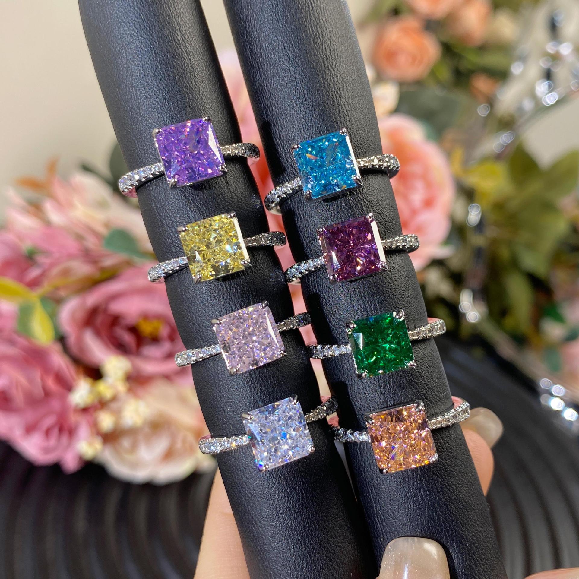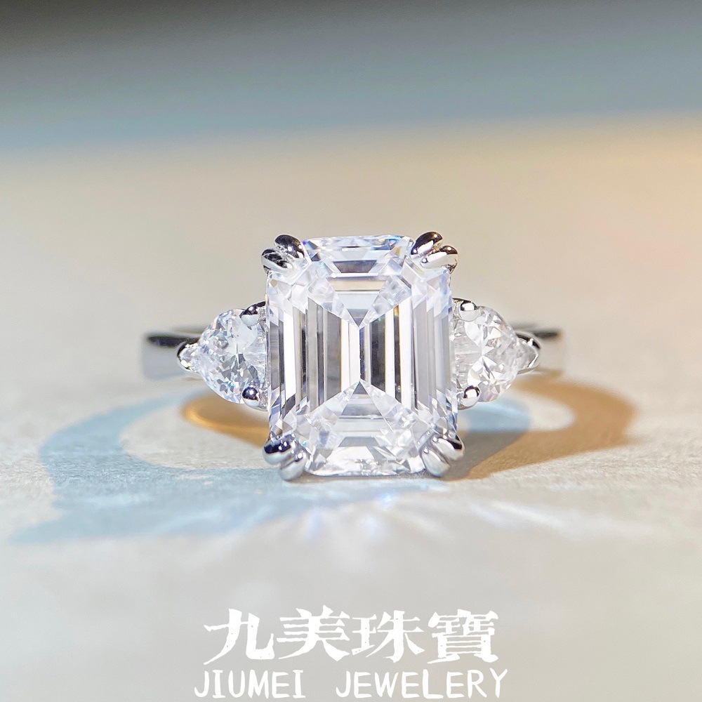 4 karat S925 sterling silver emerald cut ring women's high sense ins style sugar pagoda cut zircon ring wholesale
