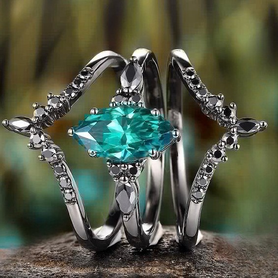 New luxury baby's panacea micro inlay color treasure ring 5 karat pigeon egg imitation mossang diamond blue green ring for women