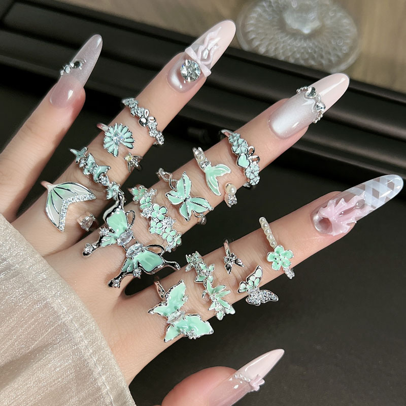 New Mint Green Full Diamond Ring for Women Niche Design Light Luxury High-End Sparkling Exquisite Zircon Index Finger Ring