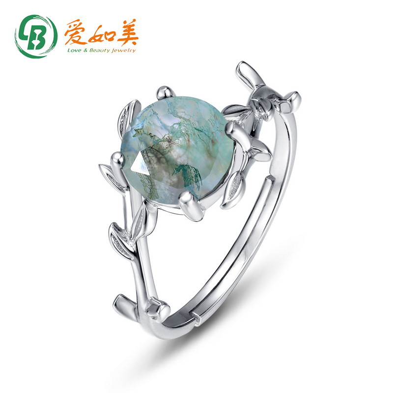 European and American Simple Style Green Moss Stone Finger Ring Light Luxury Vintage S925 Silver Aquagate Ring for Women Cross-border