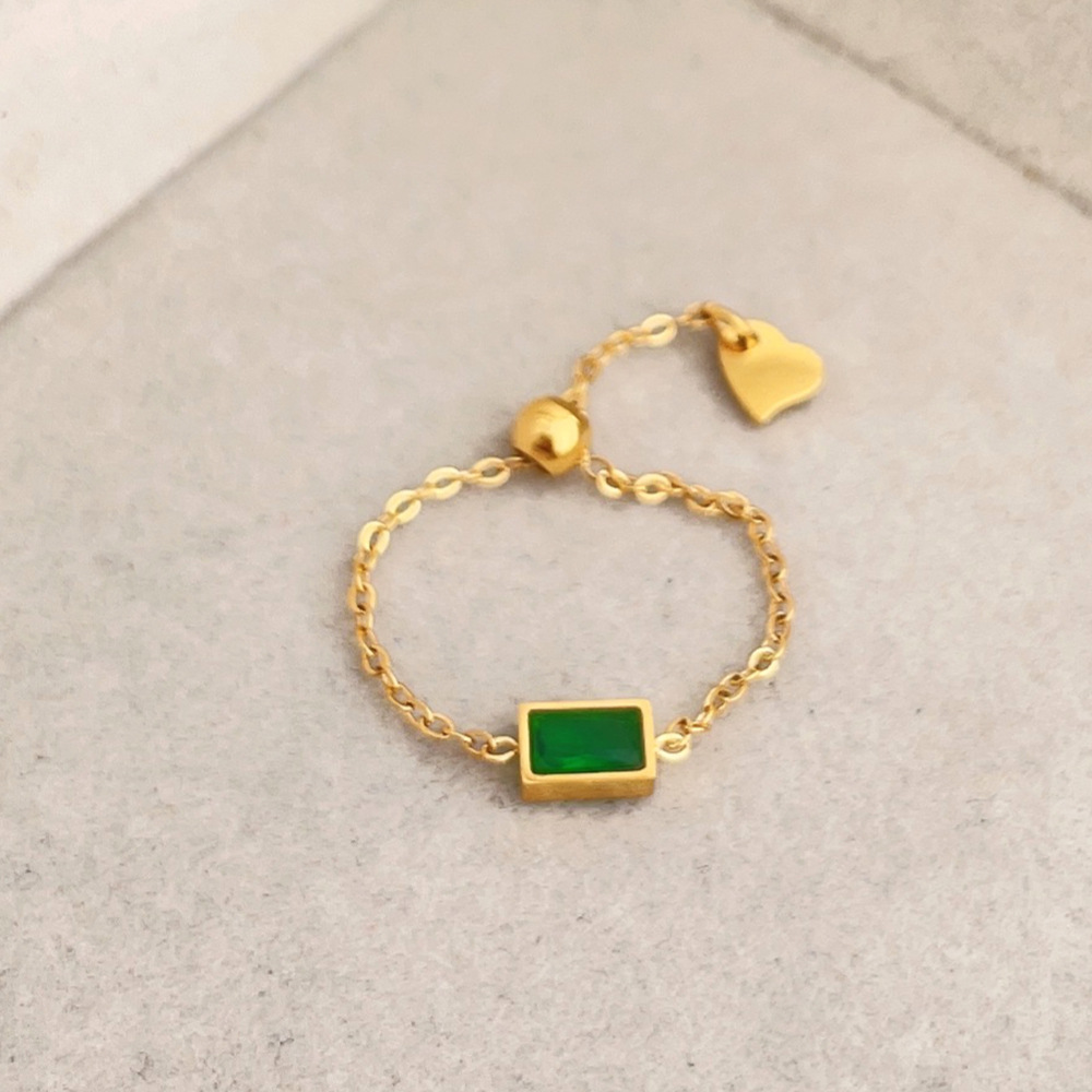 European and American fashion elegant green square diamond ring niche retro design titanium steel finger chain female autumn and winter style manufacturer in stock
