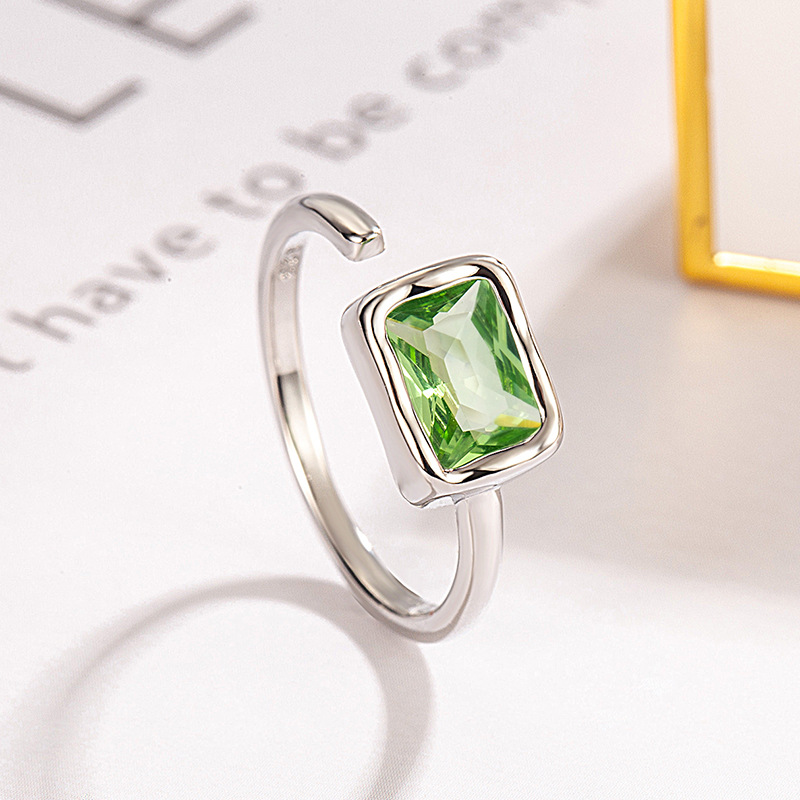 Emerald Zircon Square Ring Japanese and Korean Sweet Cool Style Geometric Opening Adjustable Index Finger Temperament Advanced Sense Ring