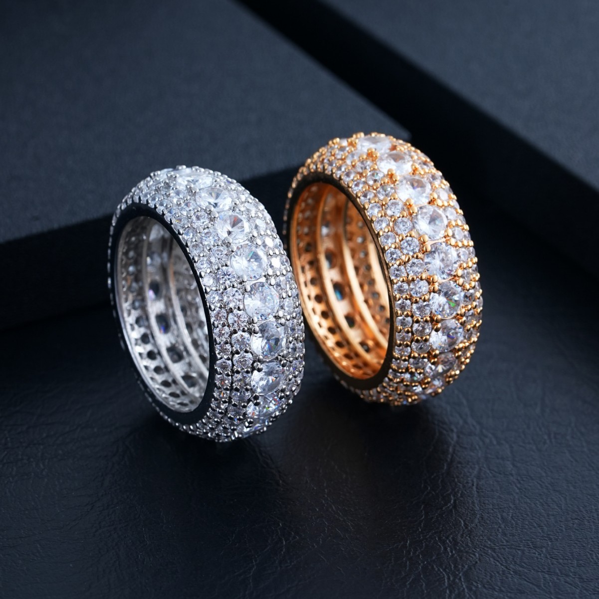 European and American Hip-Hop Ring Jewelry Cross-Border Fashion Inlaid with Five Rows of Zircon Unisex Gold and Silver Personalized Ring Accessories