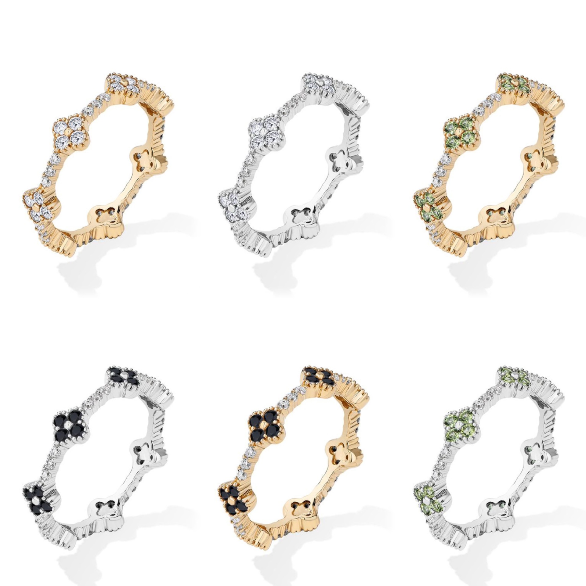 Tk Cross-Border European and American Hot-Selling New Four-Leaf Clover Ring for Women 5A Zircon Five-Flower Diamond Ring Niche High-End Hand Jewelry