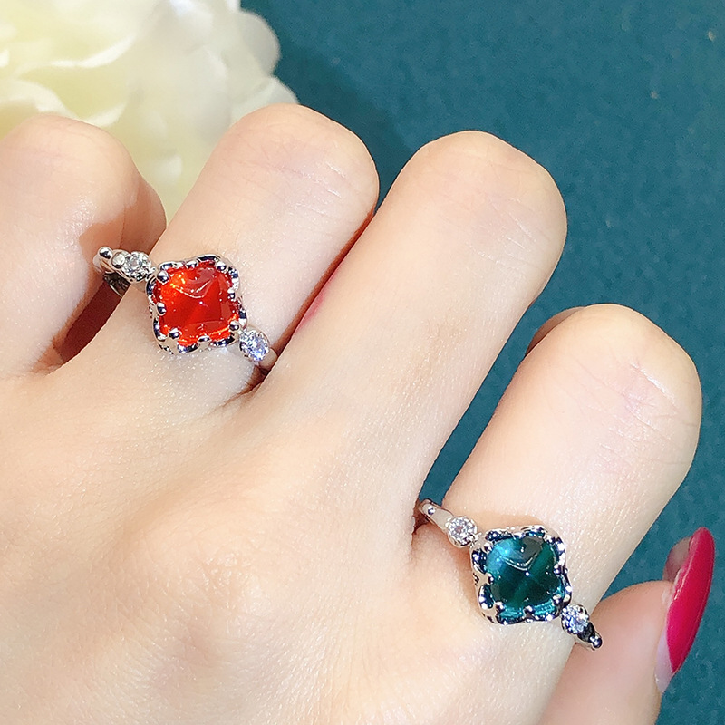 Ring Female Emerald Flower Zircon Open Ring Sweet Niche Design Food Finger Ring Internet Celebrant Adjustable Finger