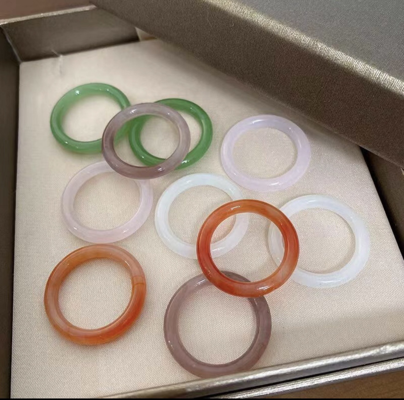 Factory wholesale imitation chalcedony 17mm men's and women's jade ring couple Harajuku style design ring ring ring jewelry