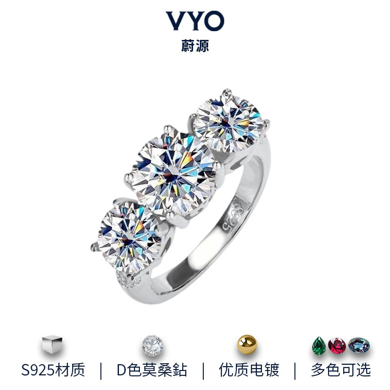 Cross-Border Wholesale S925 Sterling Silver 2 Carat 3 Stones 4 Carat Moissanite Women's Ring High-End Silver Jewelry Jewelry