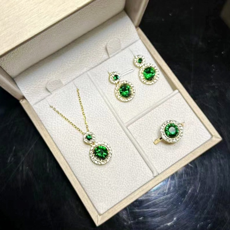 Cross-border Necklace Women's Light Luxury Emerald Micro-inlaid Zircon Full Diamond Green TikTok New Style Light Luxury Niche Design Clavicle Chain