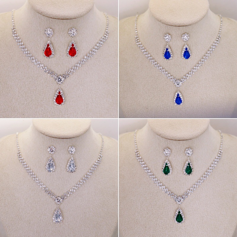 Hot Price European and American Exaggerated Personality Jewelry Vintage Alloy Diamond Multicolor Flower Bride Necklace Earrings suit