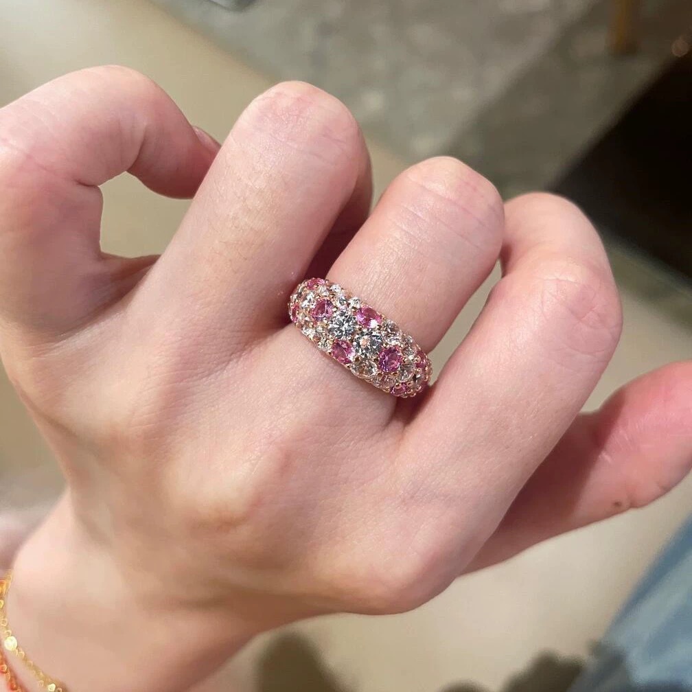 Rose Red Full Diamond Ring High-grade Light Luxury Niche Zircon Ring Open Ring