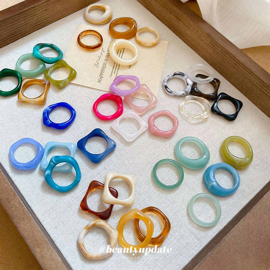 Acrylic Smudged Round Ring Five-Piece Set European and American Small Fresh Sweet Food Ring Niche Design Ring for Women