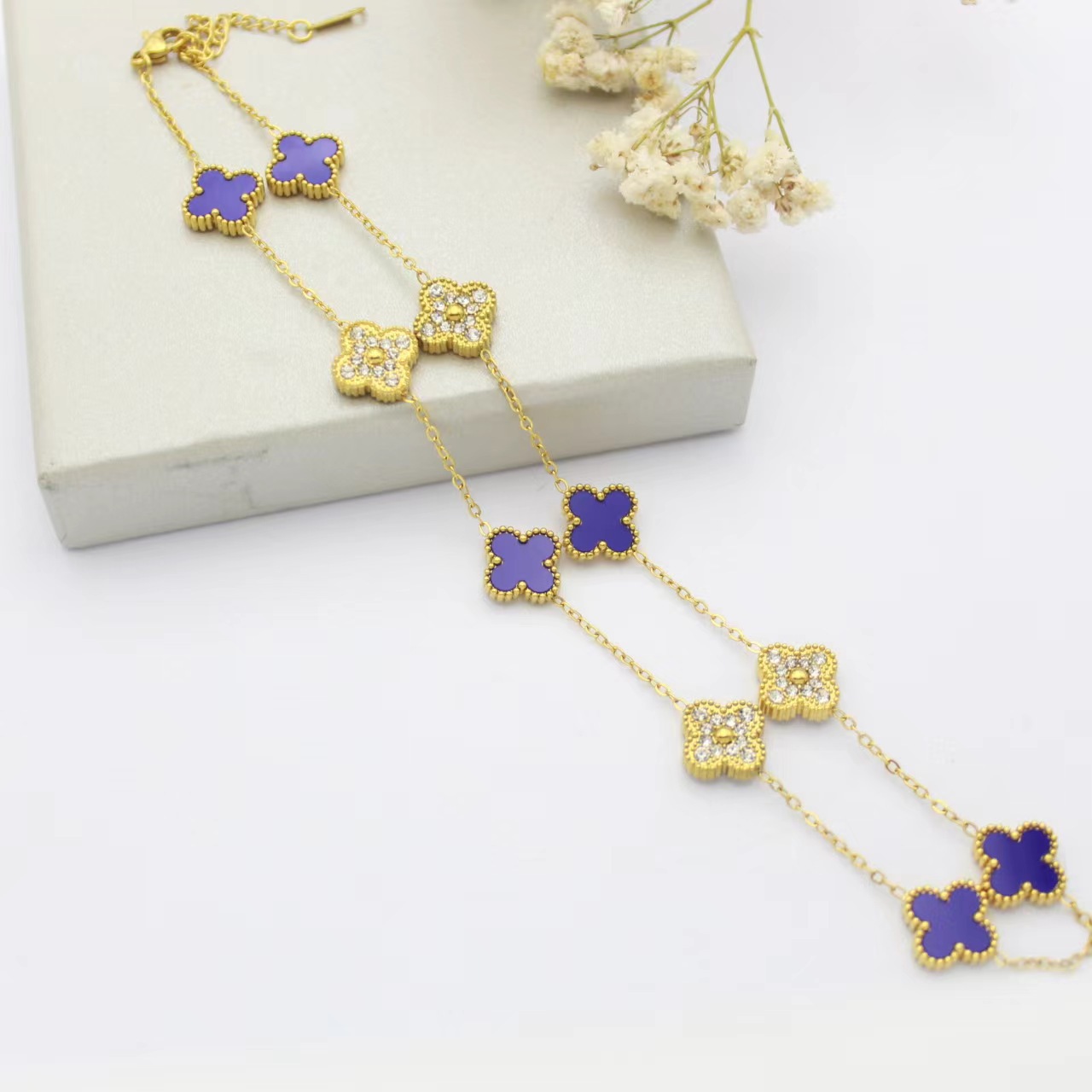 Cross-border Popular 10 Full Diamond Double-sided Ten-flower Titanium Steel Four-leaf Clover Clavicle Chain Fashionable and Versatile High-end Necklace