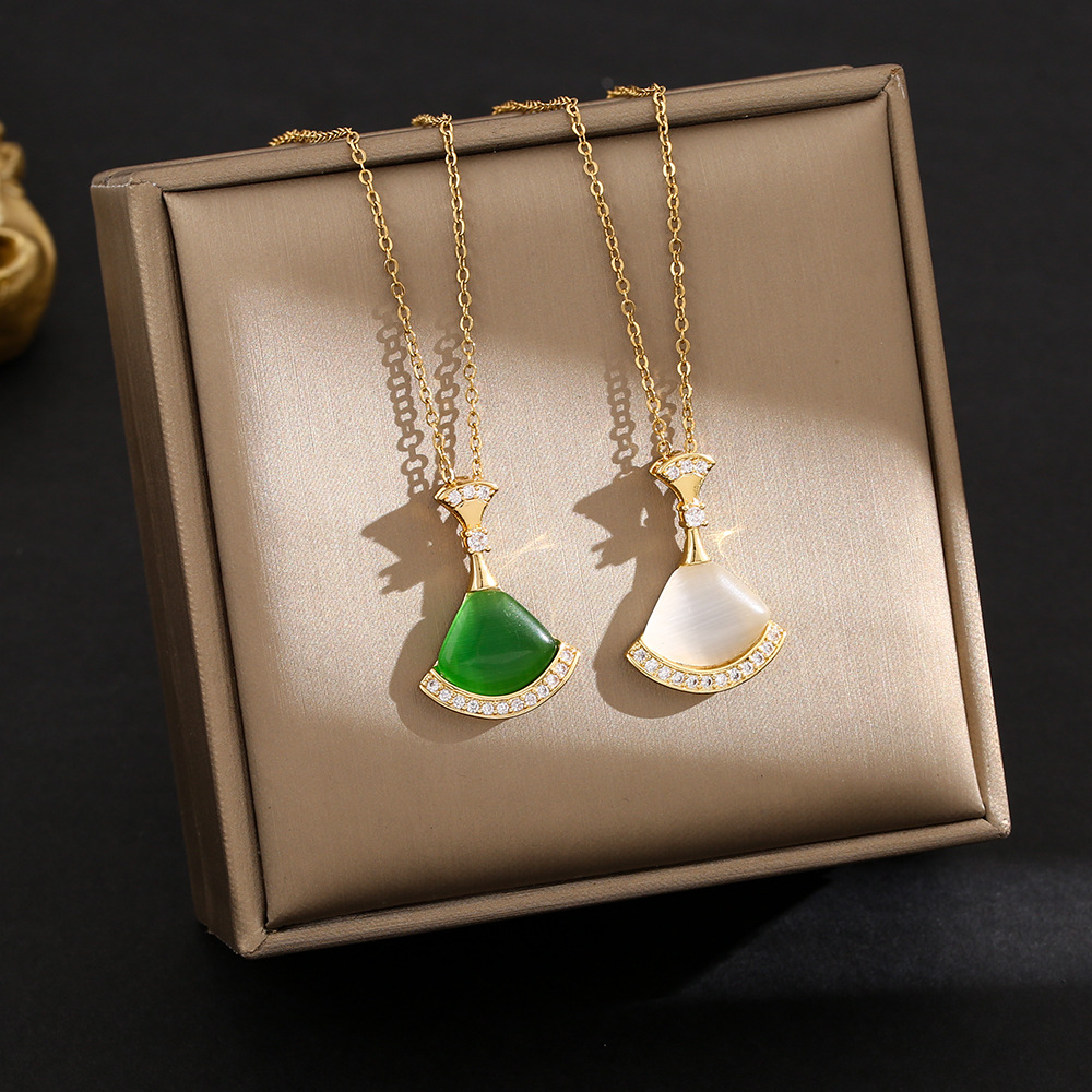 TikTok Same Style Hot Sale Small Skirt Pendant Opal Titanium Steel Collarbone Chain Non-fading Necklace Simple Fashion Jewelry